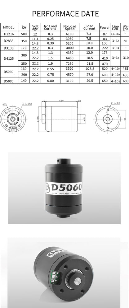 DD 5060 200kv 600W Waterproof 100m Brushless Motor 14.8-42V | Hobbywater