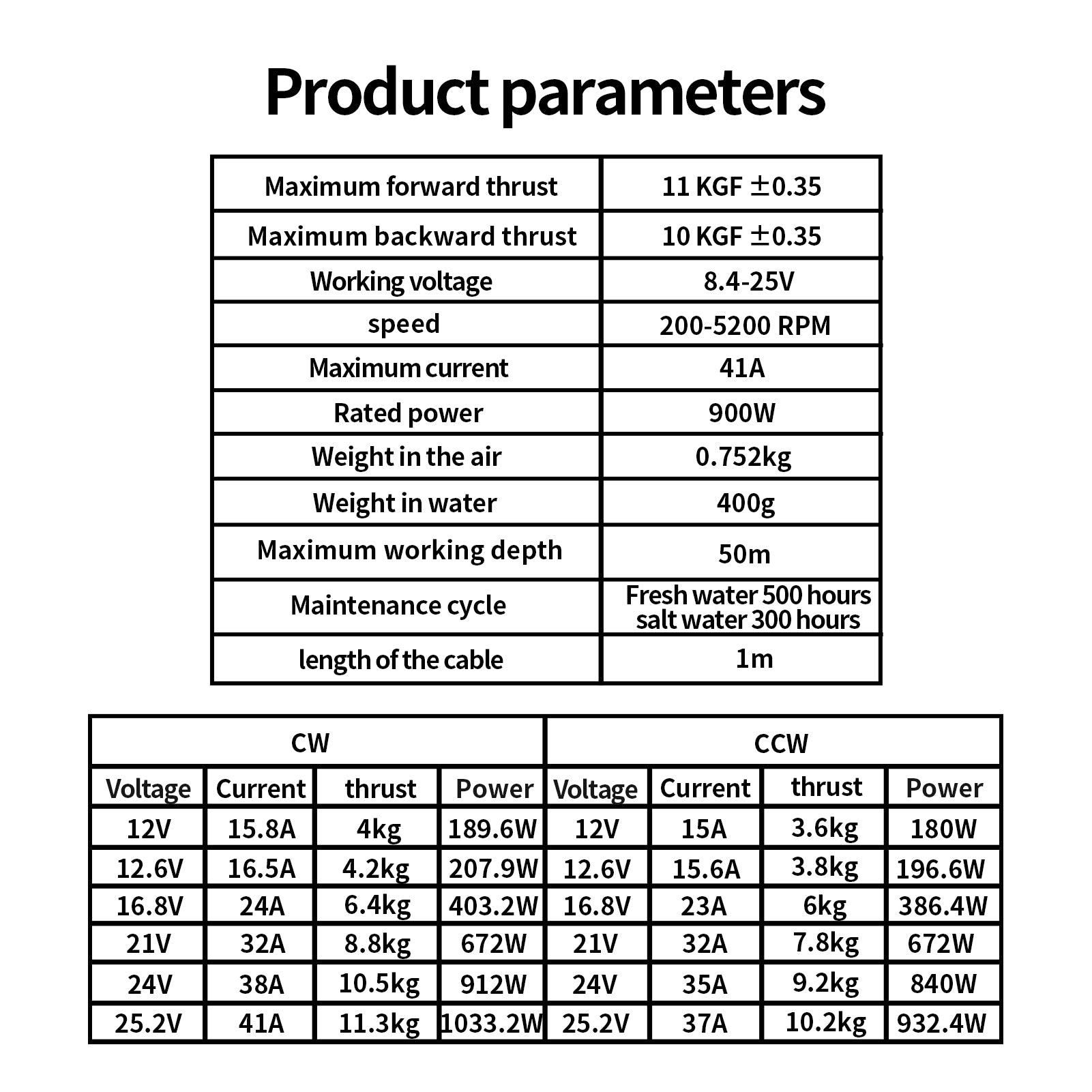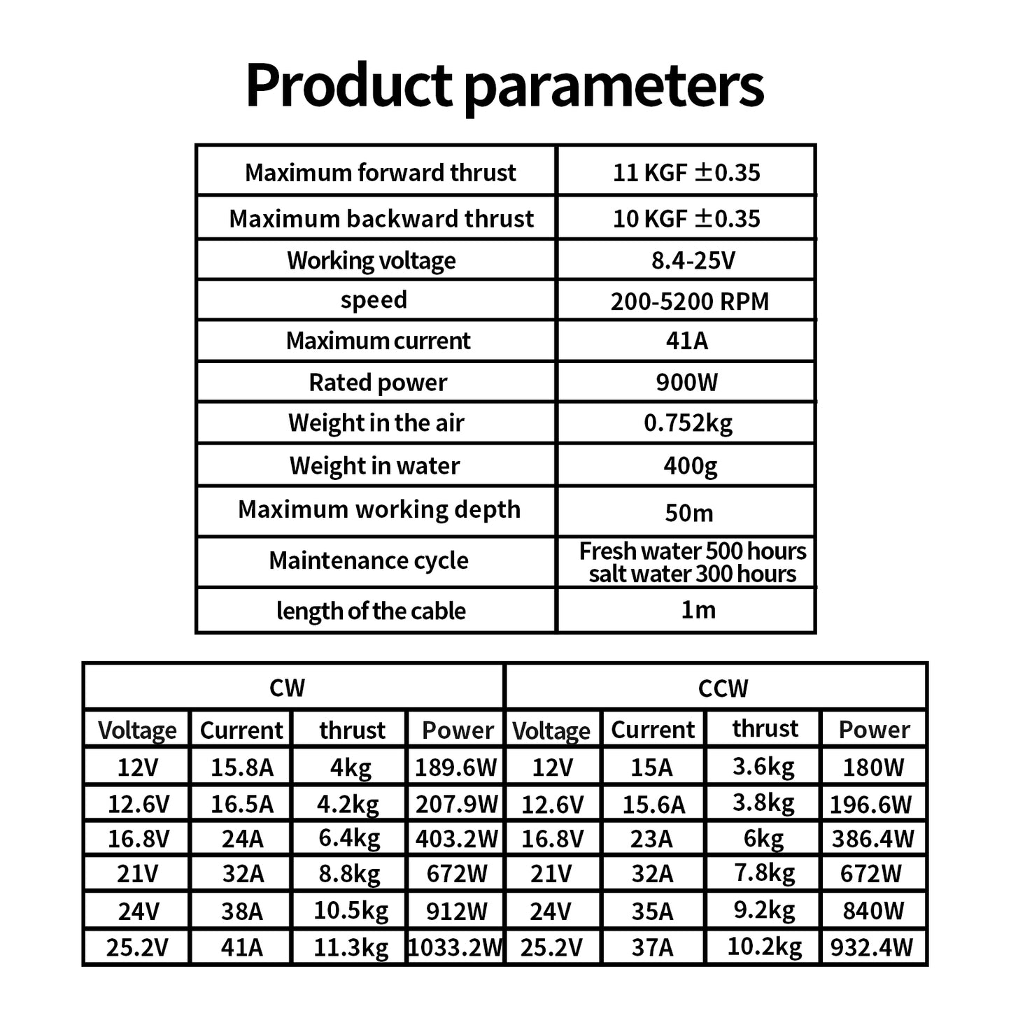 • Thrust: 11kg forward, 10kg backward
