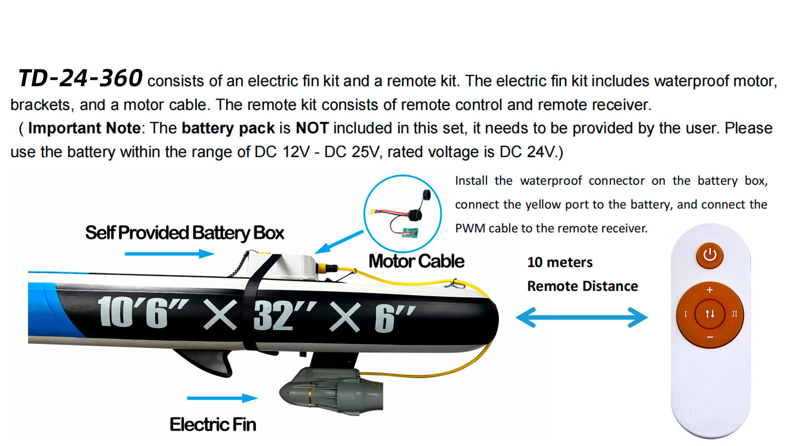 TD24 Electric Fin Kit 24v 8kg Thrust Underwater Thruster For SUP Kayaks