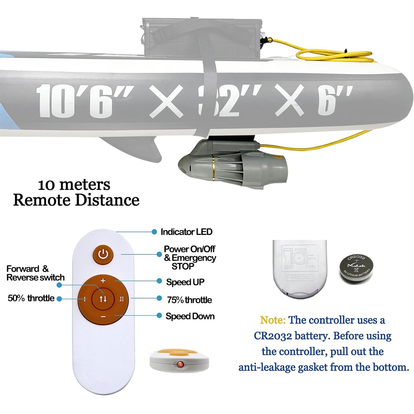 Elevate your kayaking and fishing with the Electric Fin Kit! Featuring a 24V 360w underwater thruster, it delivers an impressive 8kg thrust for seamless navigation. Perfect for kayaks, fishing boats, and paddle boards, this kit includes a waterproof motor, brackets, motor cable, remote control, and receiver.